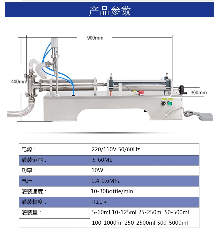 小型半自動單頭液體灌裝機設(shè)備細節(jié):